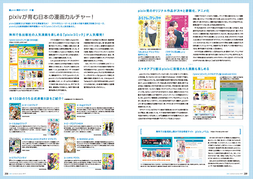 各イラストレーターの作品以外にも、盛り上がりを見せている「pixivコミック」特集、ここ1年での「pixiv」内の流行やイベント、「pixivFANBOX」などの新機能や人気の周辺サービスなど、「pixiv」を取り巻くさまざまな事象もご紹介します。